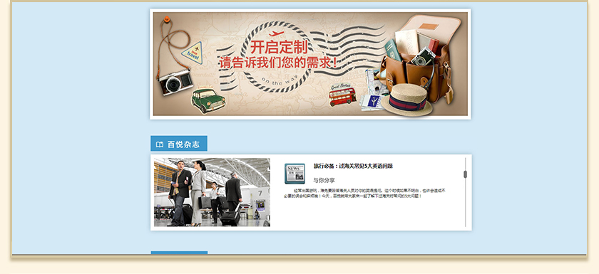 Project Description 百悦逸游于2012年初由二位资深的旅行家创办,是成都传媒集团旗下成都新闻国际旅行社有限公司的高端旅游品牌,总部位于成都高新区天府大道中段美年广场。在百悦逸游成立之前,创始团队亲自到全球三十多个国家实地考察,带着第一手的资讯和执着的信念创立了中国西部第一家真正意义上的私人定制旅行机构。百悦的旅行不是跟团挤大巴,不是十天去十个国家,更不是没完没了的... Official website address 临汾http://www.100.travel I want to share