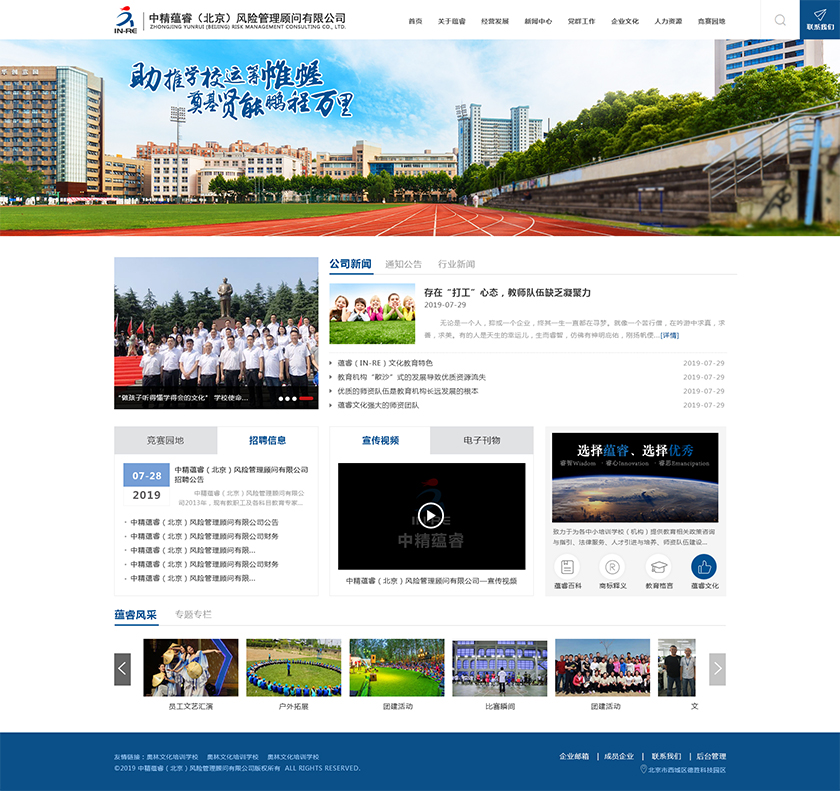 Project Description 中精蕴睿(北京)风险管理顾问有限公司2013年,现有教职工及各科目教育专家80多人,致力于为各中小培训学校(机构) 提供教育相关政策咨询与指引、法律服务、人才引进与培养、师资队伍建设与培训、教学教研与学科创新、市场营销企划、文化 理念塑造与品牌输出的专业化教育管理全方位的综合服务。 Official website address 临汾http://in-re.com/ I want to share
